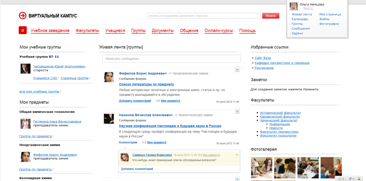 - Возможность вести свой блог в рамках портала;