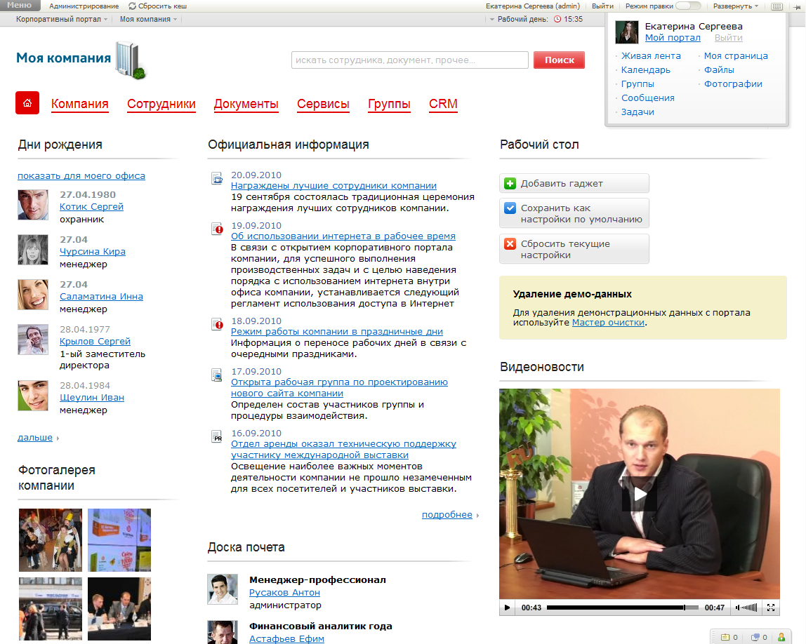 - HR-портал с представление организации, сотрудников;