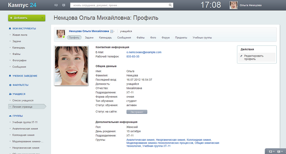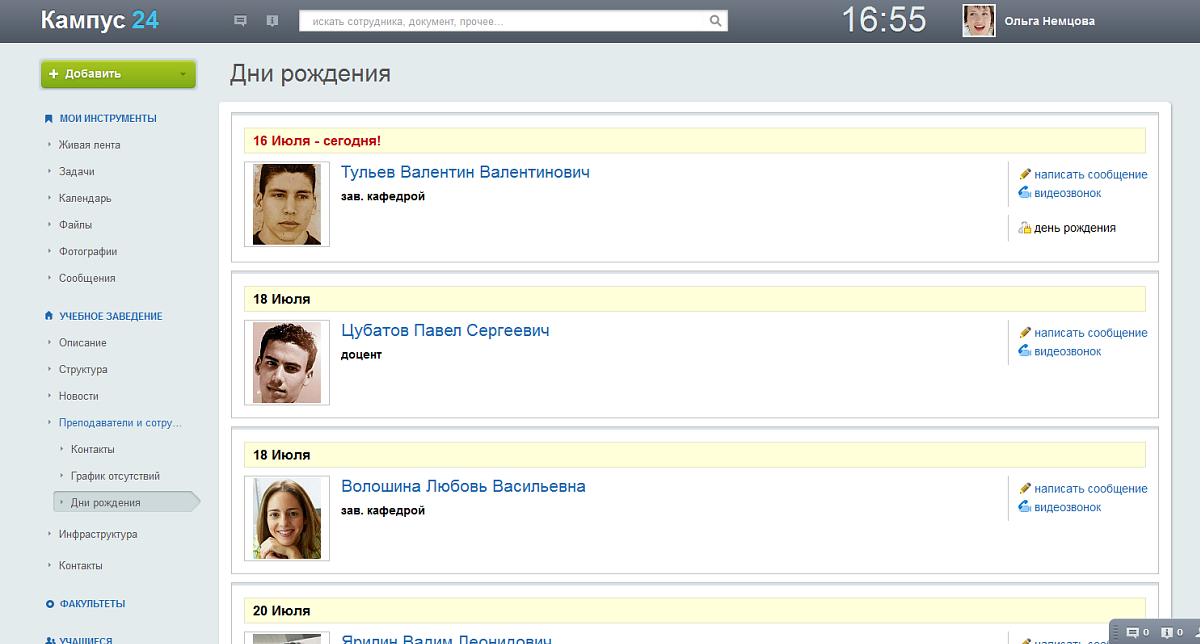 - Найти людей в социальной сети учебного заведения (преподаватели, одногруппники, другие учащиеся, выпускники), посмотреть контактную информацию, отправить сообщение