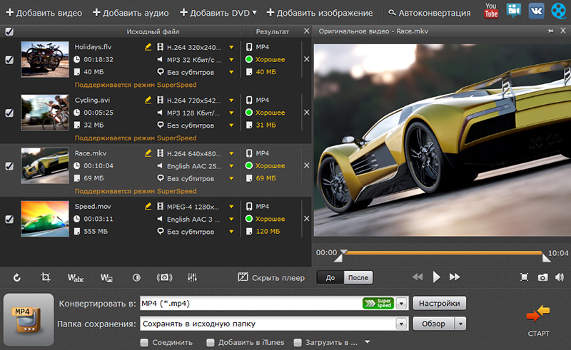 Также в Movavi Video Suite входит набор полезных приложений на все случаи жизни: мощный видеоконвертер с поддержкой 180+ форматов, удобное приложение для записи дисков, утилита для оцифровки видеокассет и многое другое.