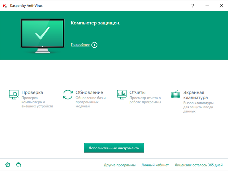 Kaspersky Anti-Virus – это решение для базовой защиты компьютера от основных видов интернет-угроз.