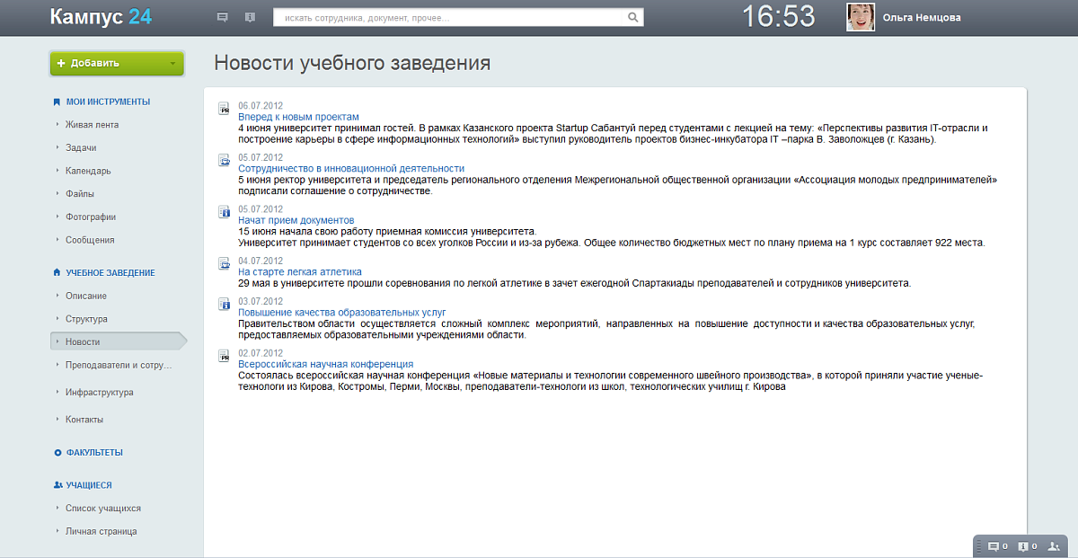- Получить подробную информацию кафедры, факультета (новости, документы, календари событий);